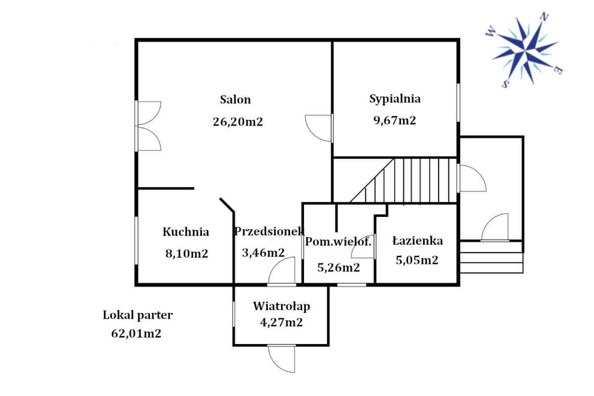 Mieszkanie na parterze- o powierzchni użytkowej 62,01 m2