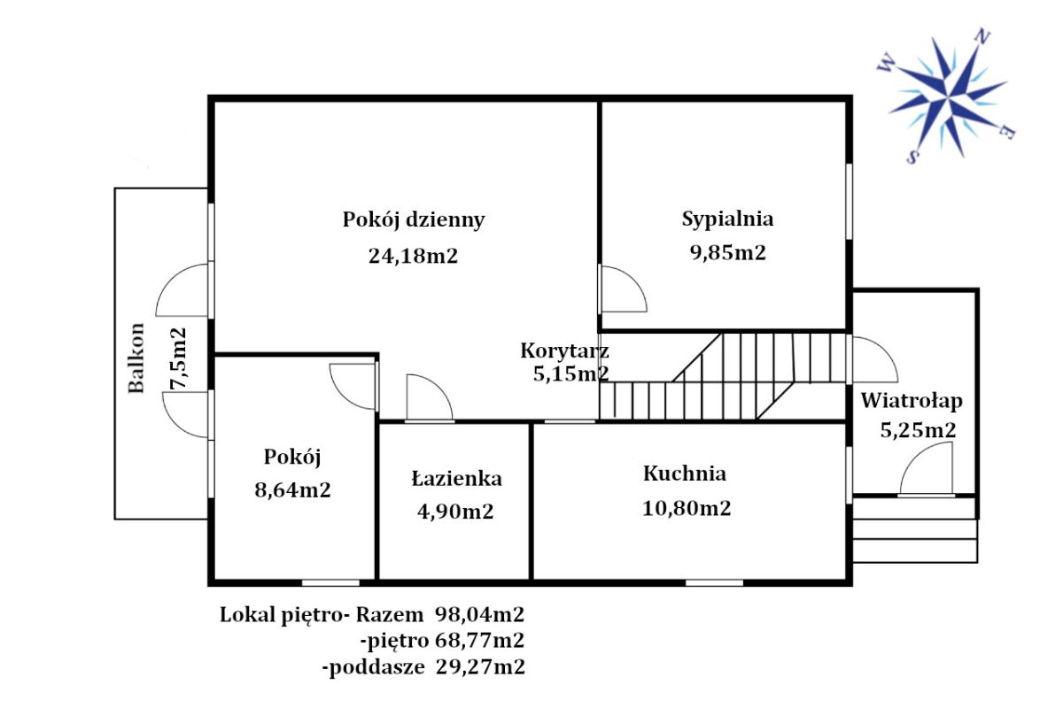 Mieszkanie na piętrze - o powierzchni całkowitej 98,04 m2 (powierzchnia użytkowa 68,77 m2)