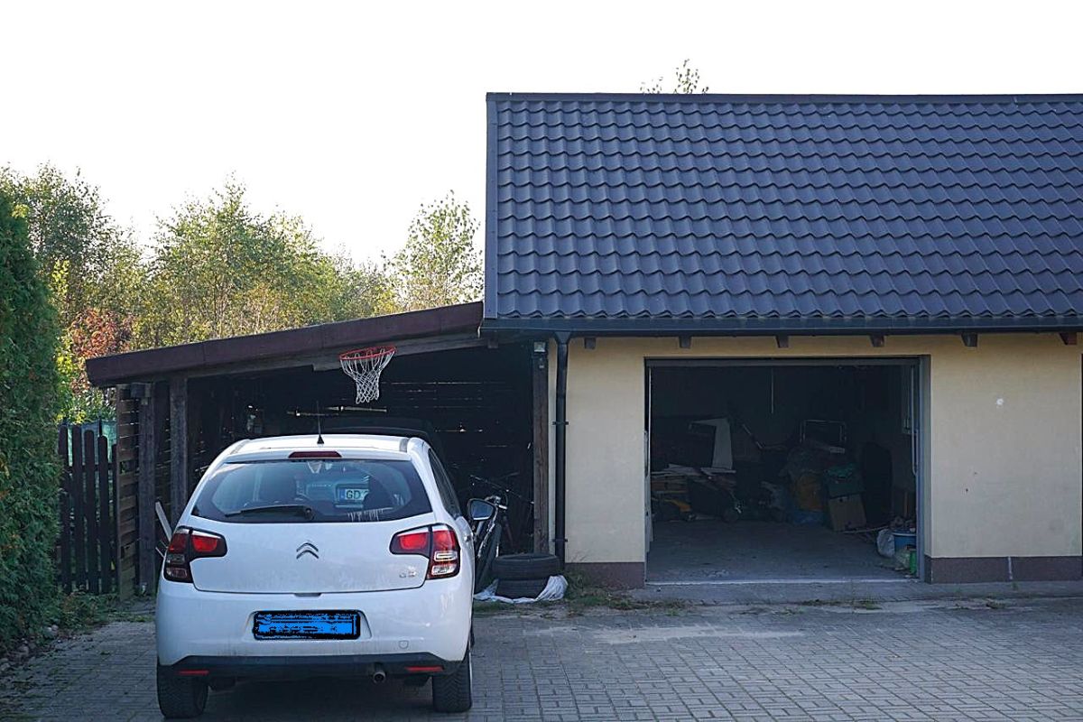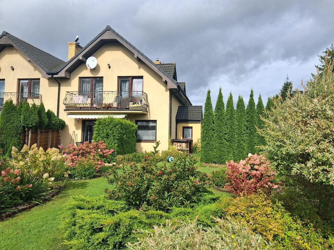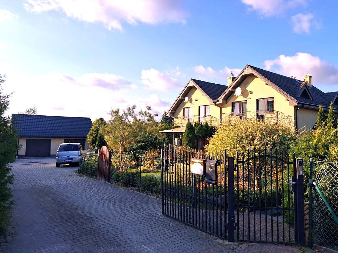 Dodatkowo garaż o powierzchni 25,50m2 przynależny do mieszkania na parterze i wiata parkingowa przynależna do mieszkania na piętrze. Dom otoczony jest pięknym ogrodem.