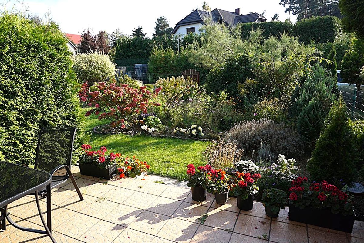 - na pozostałej części pięknie utrzymany ogród z dużą liczbą krzewów i kwiatów