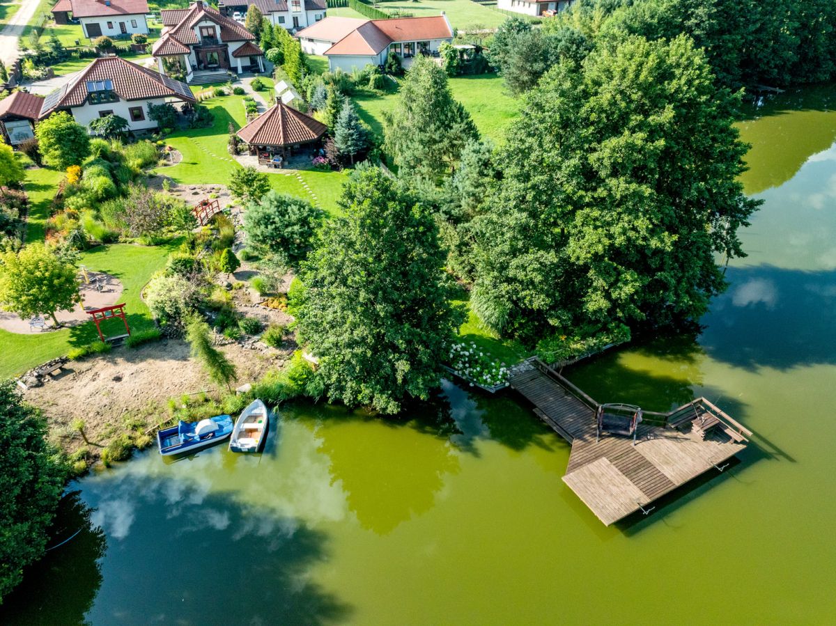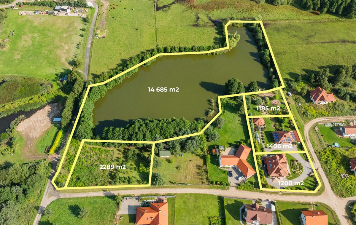 Posiadłość usytuowana jest na działce o powierzchni 2,08 ha, na której znajduje się m.in. prywatny, zarybiony staw przepływowy o powierzchni ok. 1,3 ha oraz drugi budynek z garażem i częścią mieszkalną to połączenie elegancji, komfortu i pełnej prywatności.
