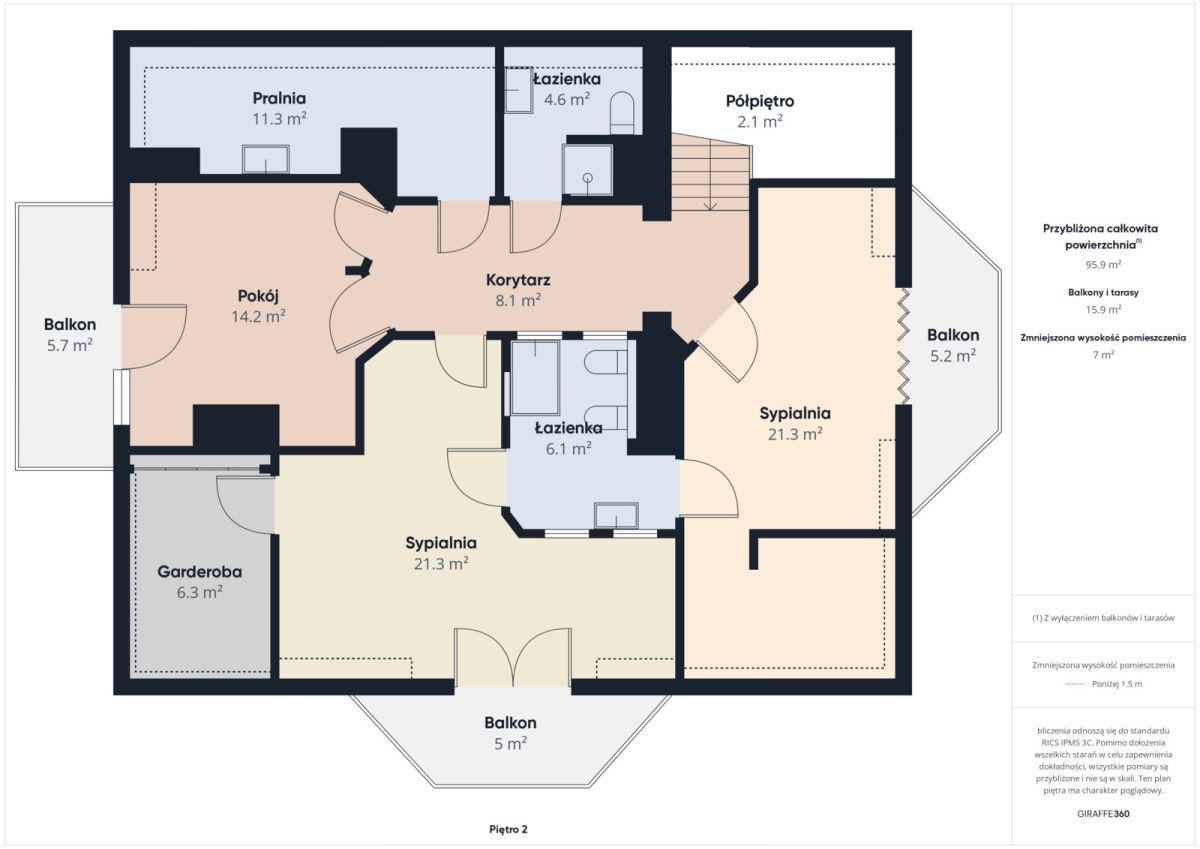 - 2 sypialnie z balkonami, garderobami i prywatną łazienką,