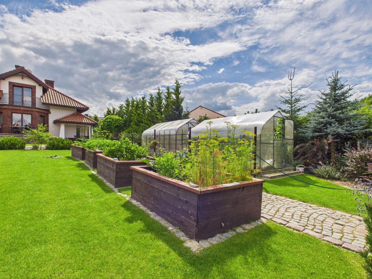 - Zadbany ogród z oświetleniem, sadem, szklarnią i ogródkiem warzywnym.