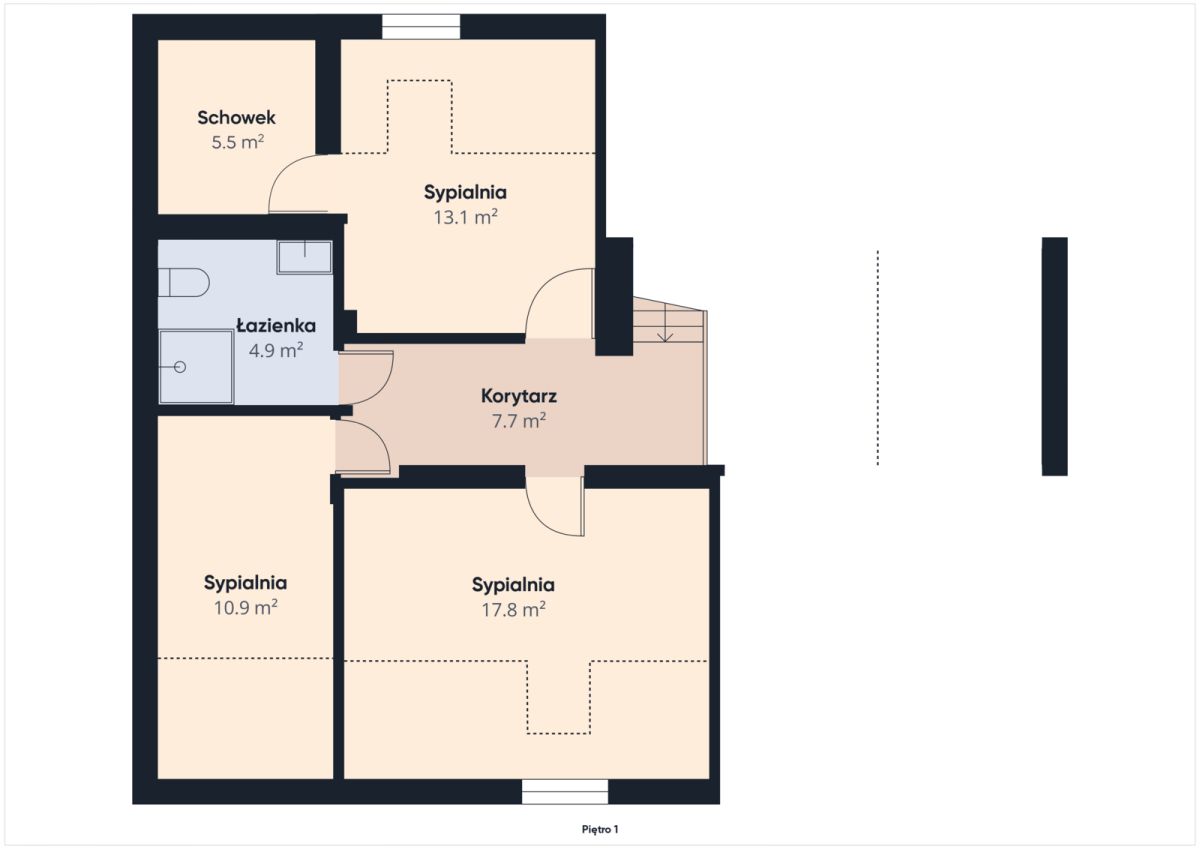 Parter i piętro to w sumie 7 pokoi, duża kuchnia oraz 3 łazienki.