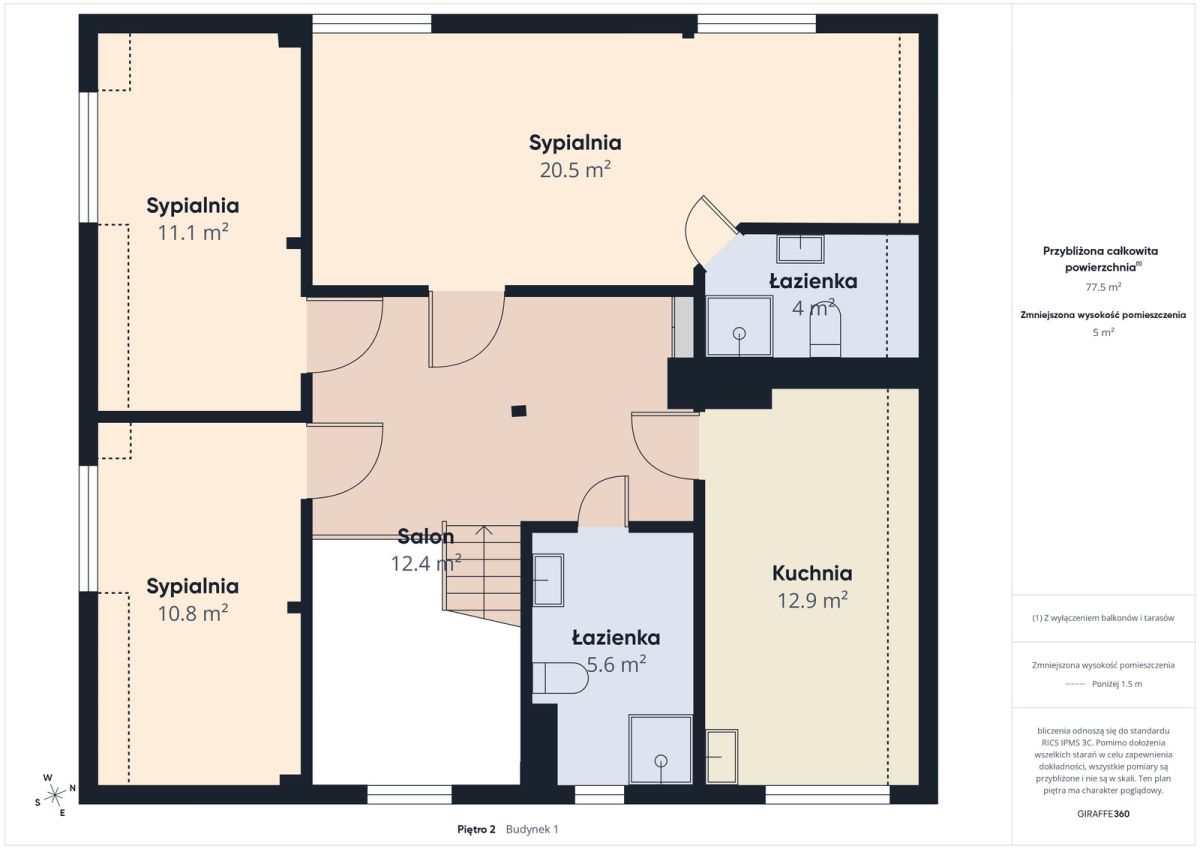 kondygnacje połączone niewielką, wewnętrzną klatką schodową